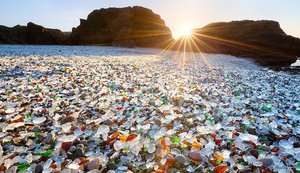 Az Üvegpart vagy más néven Glass Beach a kaliforniai Fort Bragg város mellett található, ami jelen formájában valóban igen látványos, ám nem volt ez mindig így. A 20. század elején még nem volt olyan elterjedt a környezetvédelem, mint napjainkban, ezért a város lakói a háztartási szemeteiket, üvegeiket az óceánba vagy annak partjára dobták . Néhány év alatt a korábban csodálatos part, így szemétteleppé változott. Ezt a városvezetés a 60-as években megelégelte és a partot lezárták, majd elszállíttatták az összes szemetet a partról. A milliónyi üveg törmelék azonban feltakaríthatatlan volt, ezért azt a szél és a hullámok sok-sok év alatt valóságos drágakövekké csiszolta. Ezzel létrejött egy ma már turistalátványosságnak számító Üvegpart. A szokatlan látványt tovább fokozza a különféle formájú és színű áttetsző üvegeken megcsillanó nap sugarainak képe.