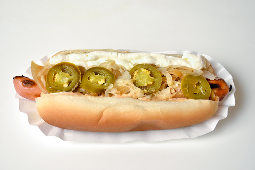 Itt már belevethetjük magunkat az ízek kavalkádjába. A hotdog kiflibe helyezett sült kolbász, krémsajt, reszelt káposzta, jalapeno szeletek és a sriracha chili szósz egy teljesen egyedi íz harmóniát nyújt a szánkban.