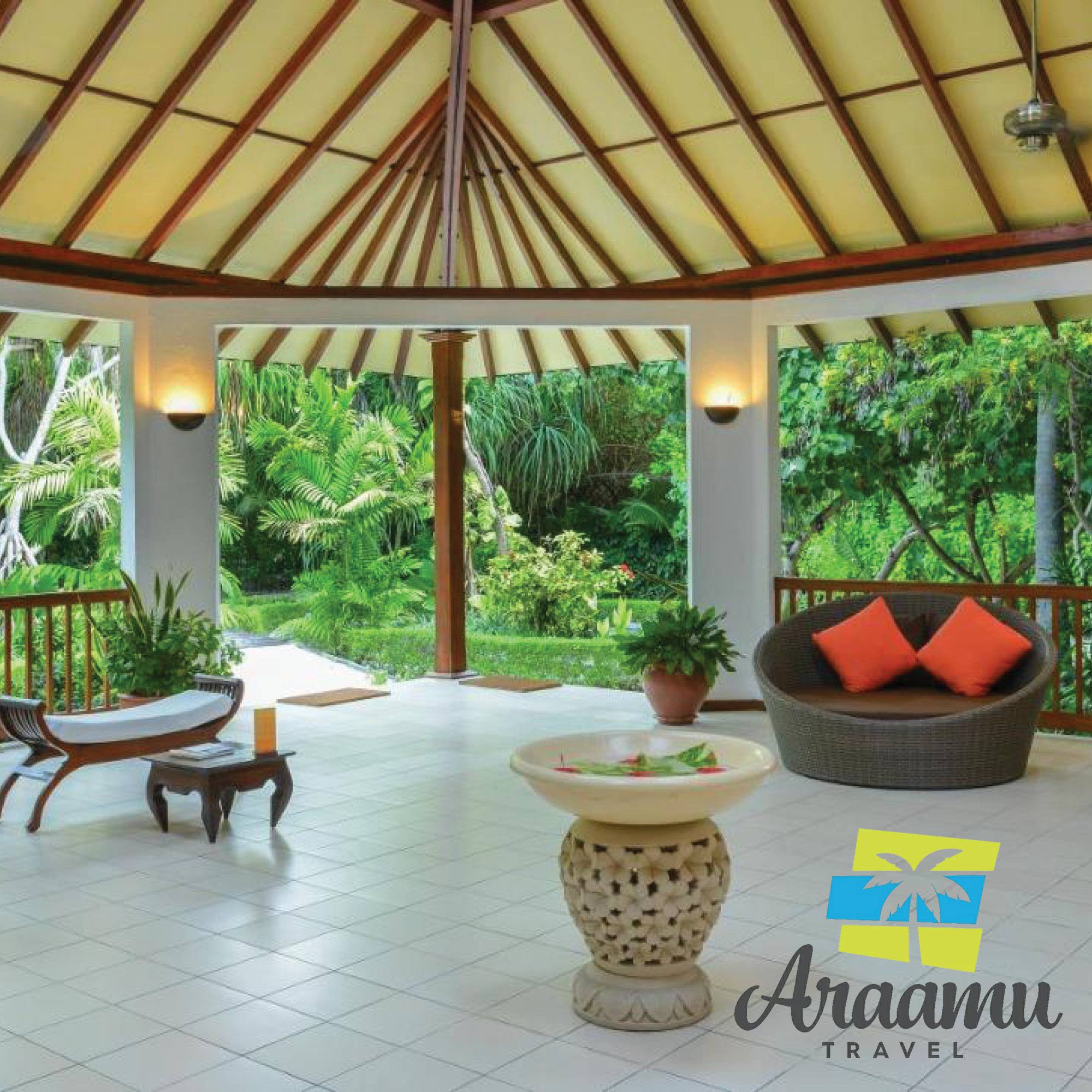 Az Araamu Travel utasainak szabad bejárása van a szálloda saját társalgójába Male repterén a hidroplánra való várakozási idő alatt.
