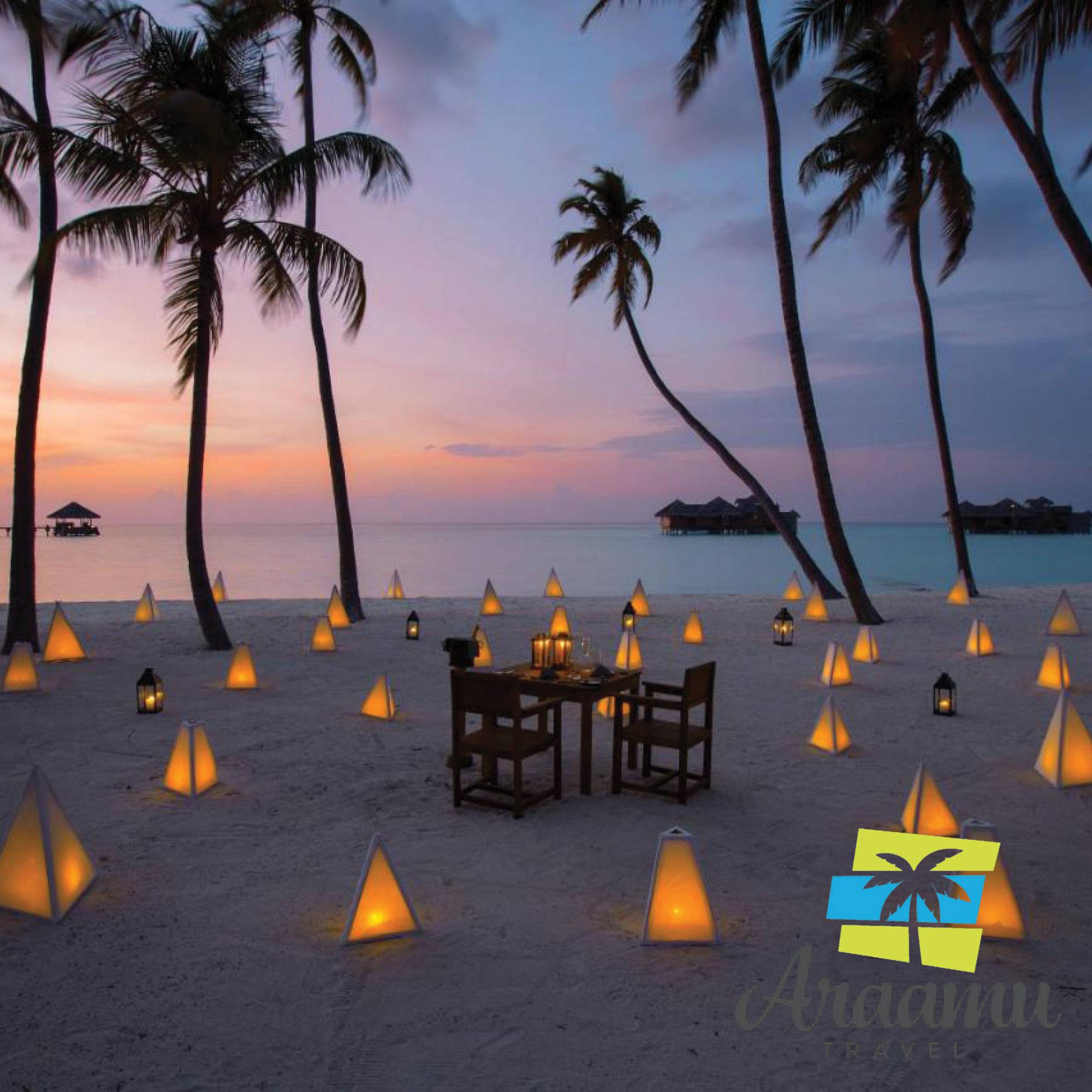 Mivel a sziget egy úgynevezett „mezitlábas sziget”, az étteremnek is természetes homok a „padlózata”. A fő étterem a The Restaurant on the Beach, melyben a reggeli büfét szolgálják fel, valamint este mediterrán specialitásokat kínálnak ázsiai hangulatban. A By the Sea-ben sushi-t, sahsimi-t és japán specialitásokat ízlelhet meg leheletnyi finom perui fűszerezéssel. A The Over Water Bar délben könnyű ételeket, kemencében sült pizzát és változatos büfét kínál. Mindemellett a szálloda gourmet-borospincével rendelkezik, melyben sajtspecialitások is fogyaszthatóak, és medencebárral. Ellátás: reggelis foglalásnál reggeli büfé a főétteremben. Félpanziós foglalásnál: plusz vacsora büfé vagy menü formájában a főétteremben, teljes panziós foglalásnál pedig plusz ebéd az Over Water Bar-ban.