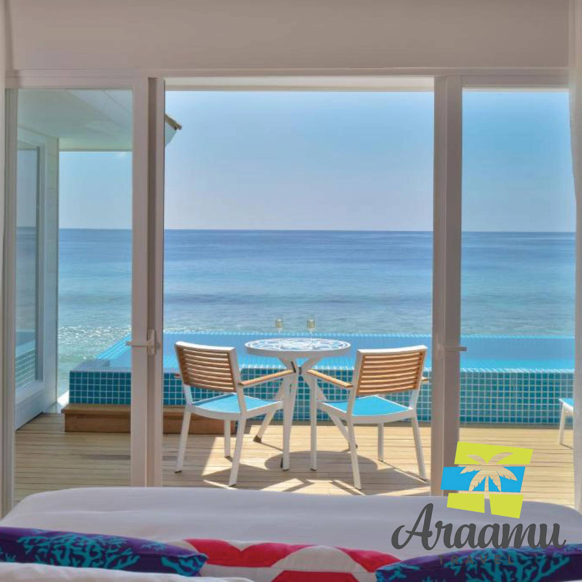 Aqua Villa: 30 db, 70 nm-es, 25 nm-es teraszos víz fölé épült villák. A fürdőszobában káddal, zuhanyzóval, mosdóval. A teraszon napozóágyak és közvetlen víz kapcsolat. Felszereltségben megegyezik a fenti szobatípusokkal.