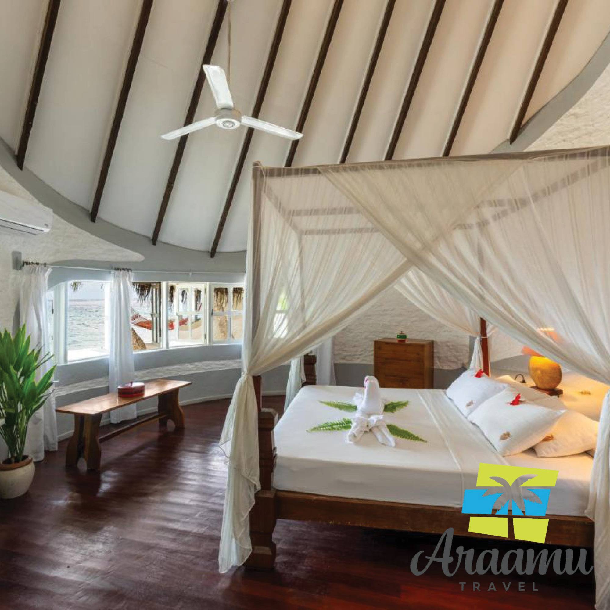 Minden Standard-Villa tágas és komfortosan berendezett (kb. 75 nm). Felszereltség: fürdőszoba, hajszárító, klíma (a hálóban), mennyezeti ventilátor, telefon, tv, kávé-/teafőző, miniábár (térítés ellenében), szobai széf, CD-lejátszó és saját partszakasz. A Vízi-Villák (kb. 110 nm) megegyező felszereltségűek (a partszakaszt kivéve), a lagúna felett épültek, és nagyobb szabásúak. A déli oldalon, a belső zátonyhoz közel kialakított Deluxe-Strand-Villák (kb. 75 nm) szintén a Standard-Villákhoz hasonlóan felszereltek, de teljesen klimatizáltak és plusz ingyenes WIFI-csatlakozással rendelkeznek.