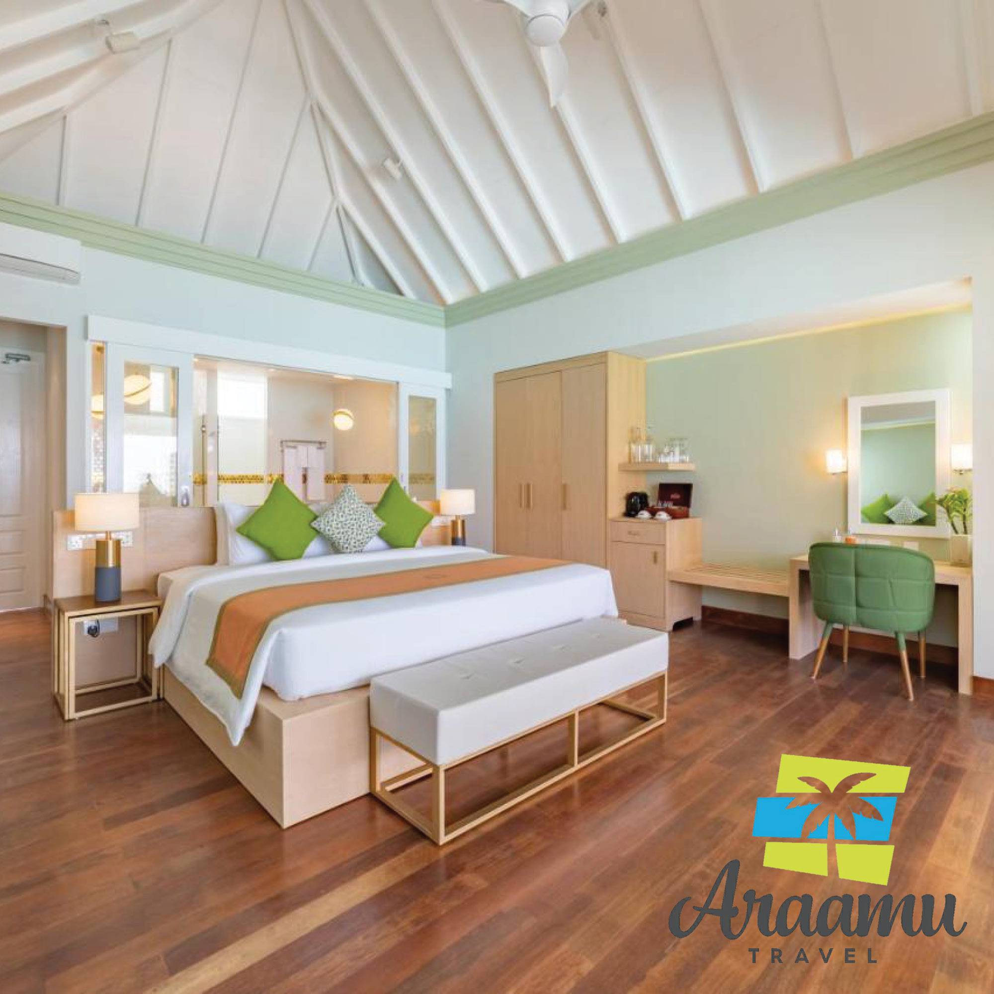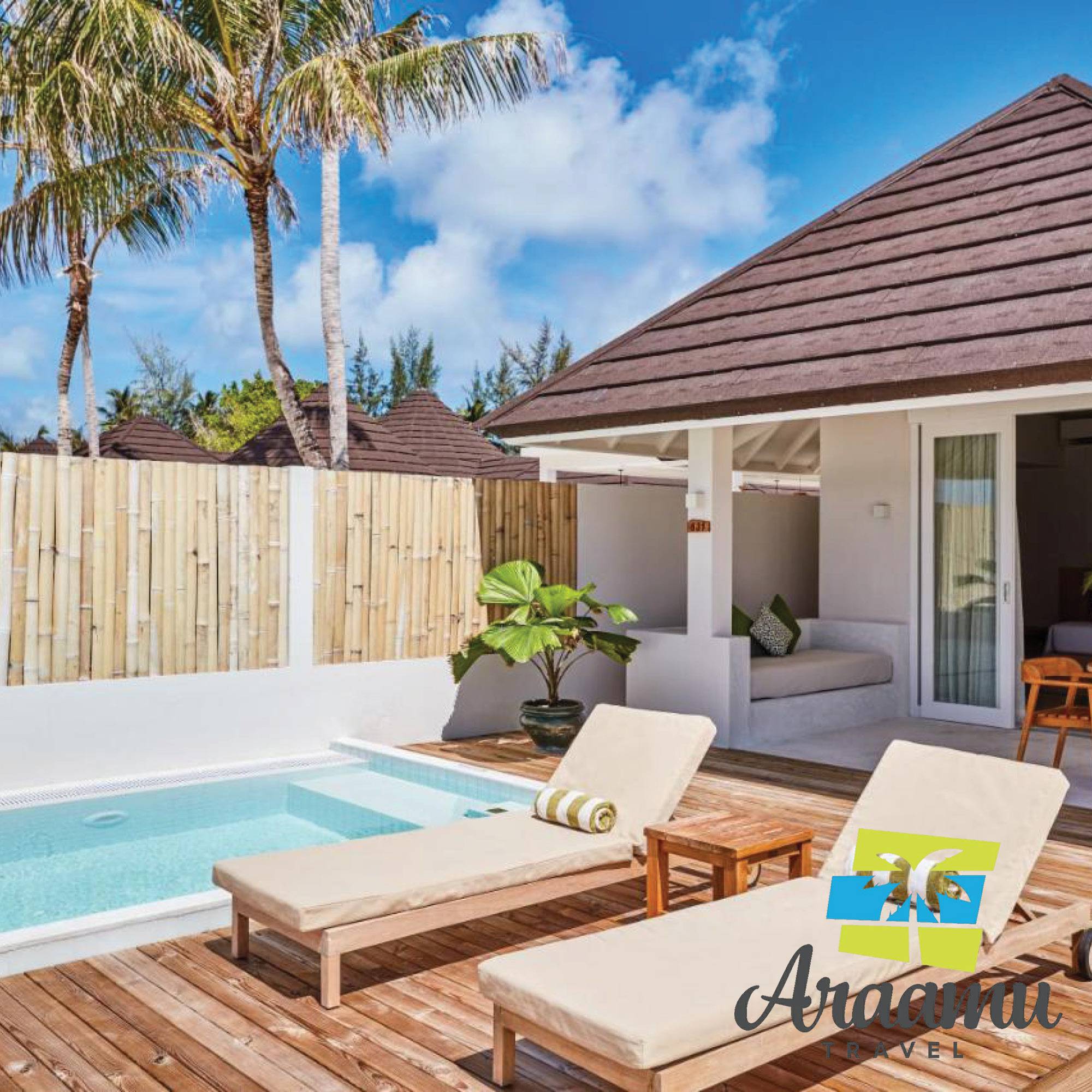 Beach Villa: kb. 84 nm (8), különálló Beach Villák (a következő villához a távolság kb. 4 m), a déli szigetcsúcson. Felszereltségében a Deluxe-hoz hasonló, plusz ülő alkalmatossággal, félig nyitott fürdővel, káddal, kabinos zuhannyal, plusz kinti zuhannyal és egy nyugágyas pavilonnal, CD-lejátszóval, térítés ellenében internettel, heverős verandával és privát partszakasszal.