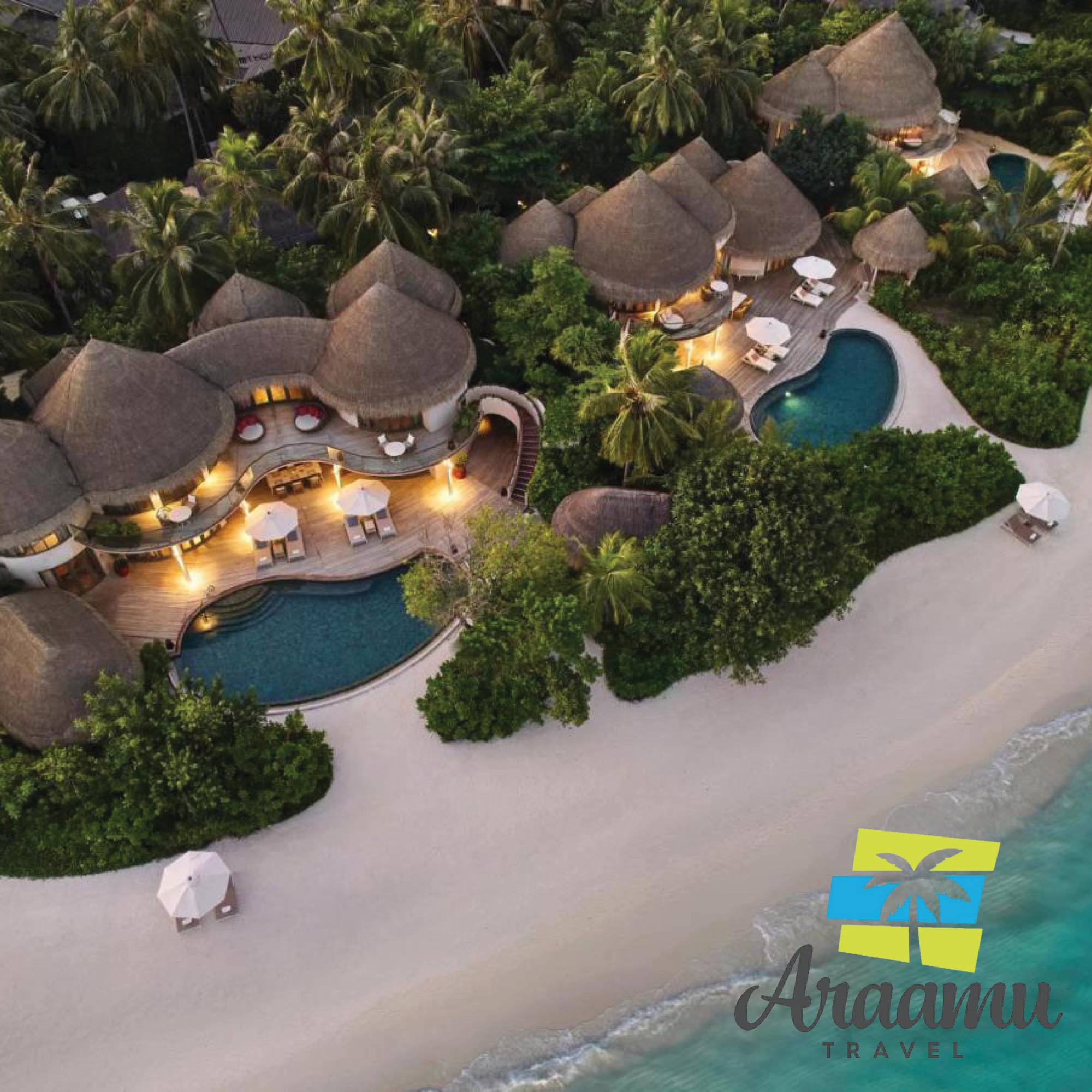 A 26 ház és rezidencia az azúrkék óceán és a trópusi növényzet veszi körül.