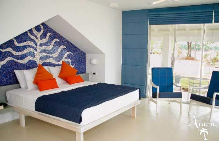 Beach Chalet: kb. 44 nm (36), a Superior-hoz hasonló, plusz fürdőköntössel, DVD-lejátszóval, a parton az első sorban való elhelyezkedéssel, de terasz nélkül,